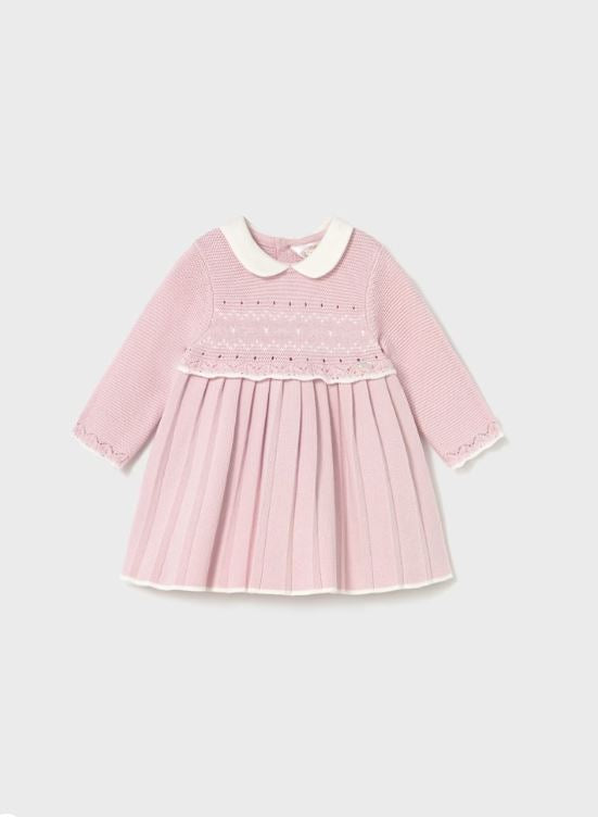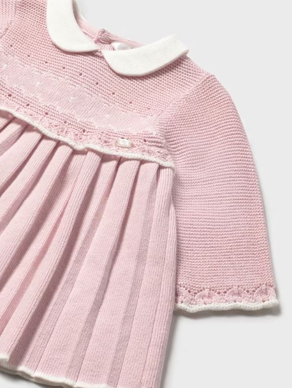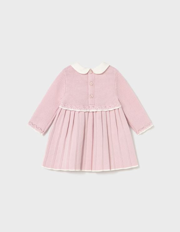 Tenerissimo vestito manica lunga per neonata. Girocollo con colletto . Chiusura con bottoni sulla schiena per facilitare la vestizione. Design unico e speciale.