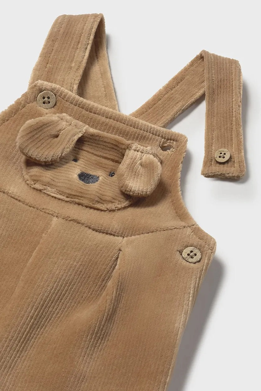 Salopette lunga con bretelle neonato. Chiusura con bottoni a pressione nell'interno cosce per agevolare la vestibilità. Chiusura con bottoni. Caldo tessuto comodo e morbido. Modello ampio. Tasca funzionale nella parte anteriore.