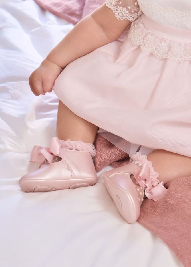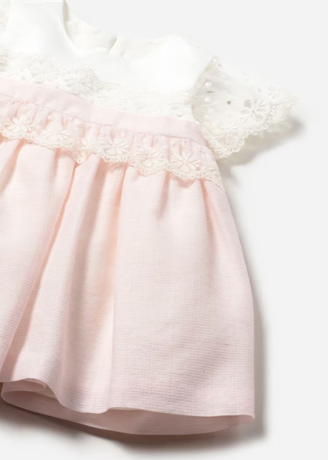 Abito Battesimo in Pizzo con Fusciacca in Voile Rosa – Mayoral